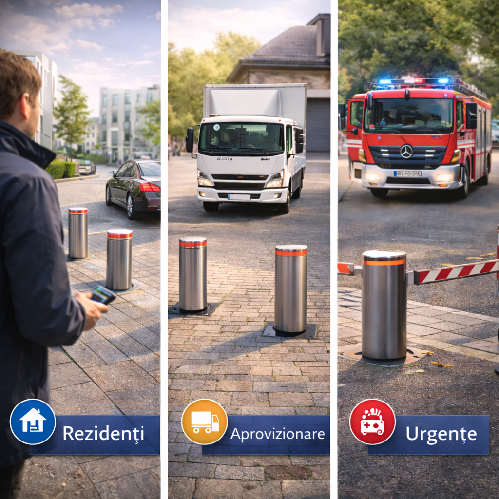 Integrați într-un sistem complet de control acces, bolarzii pot fi gestionați prin telecomandă, cititor de card, aplicație sau sistem centralizat, oferind un nivel ridicat de siguranță și flexibilitate.