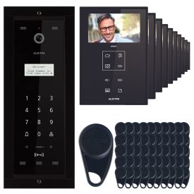 Kit videointerfon Electra Touch Line Smart pentru 10 familii, panou exterior incastrat pentru max. 40 de familii, panou interior 4.3 inch, negru, cablare 4 fire