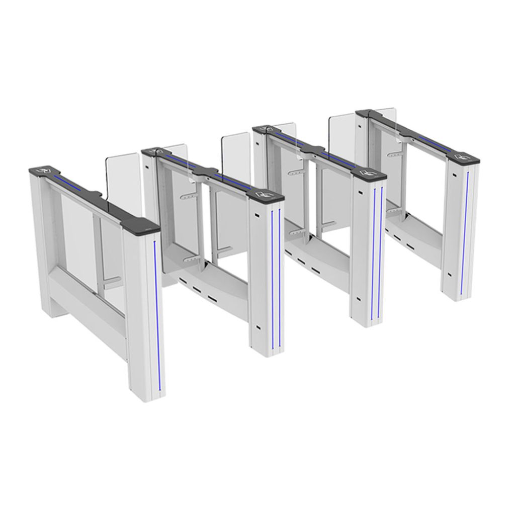 • Aripile electromecanice motorizate sunt închise în stand-by. Persoana solicită autorizare de la dispozitivul de control acces (dispozitiv terță parte) conectat la sistemul de intrare al porții. După autorizare, aripile se deschid, trecerea persoanei este monitorizată de multi-senzori de-a lungul pasajului, iar aripile se închid la finalizarea trecerii. În cazul unor autorizații de acces ulterioare, aripile rămân deschise până când ultima persoană își finalizează trecerea și apoi se închid.