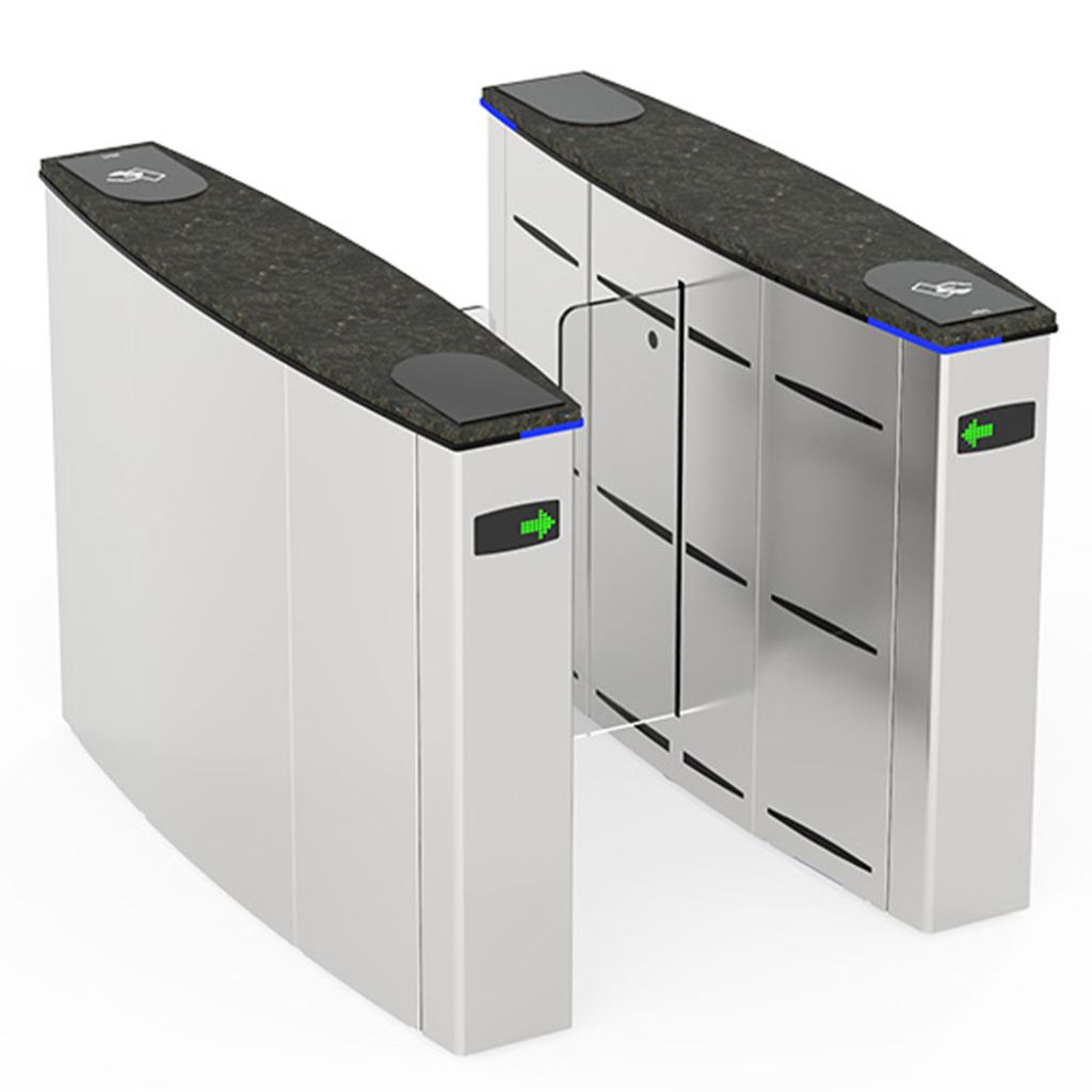 Set turnichet poarta rapida retractabila Atlas Model SB 100FL, 2 pasaje de trecere, aripi si capac din sticla securizata
