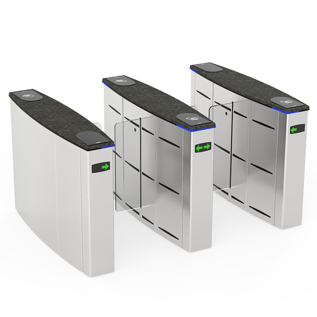 Set turnichet poarta rapida retractabila Atlas Model SB 100FL, 3 pasaje de trecere, aripi si capac din sticla securizata