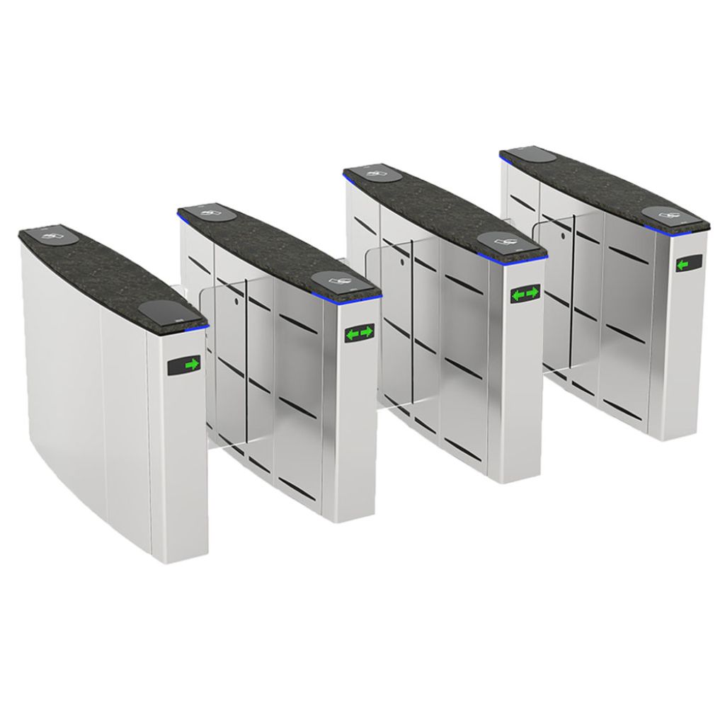 Set turnichet poarta rapida retractabila Atlas Model SB 100FL, 3 pasaje de trecere, aripi si capac din sticla securizata