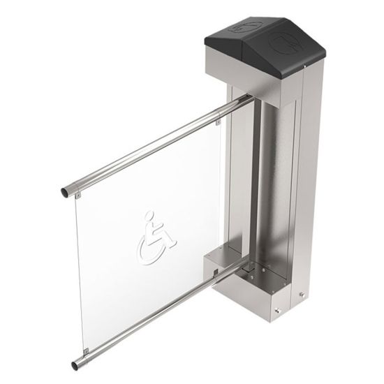 Contrema Turnichete de acces Mobilitate redusă Turnichet poarta batanta Atlas seria OWL model VIP 203A, motorizat, inox, aripa brate aluminiu anodizat si Plexiglas, capac unghiular